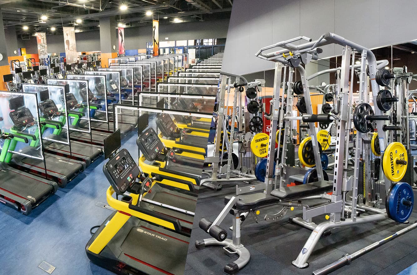 広々としたトレーニングエリアには、有酸素マシンや筋トレマシンなど、つねに最新のマシンが勢揃い