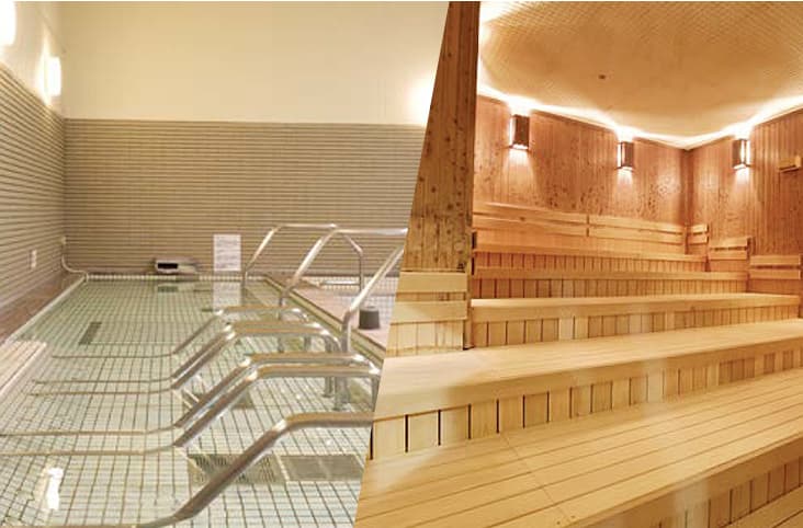 充実のシャワーブースに、1日ゆったり入れる露天スパや大型スパ。